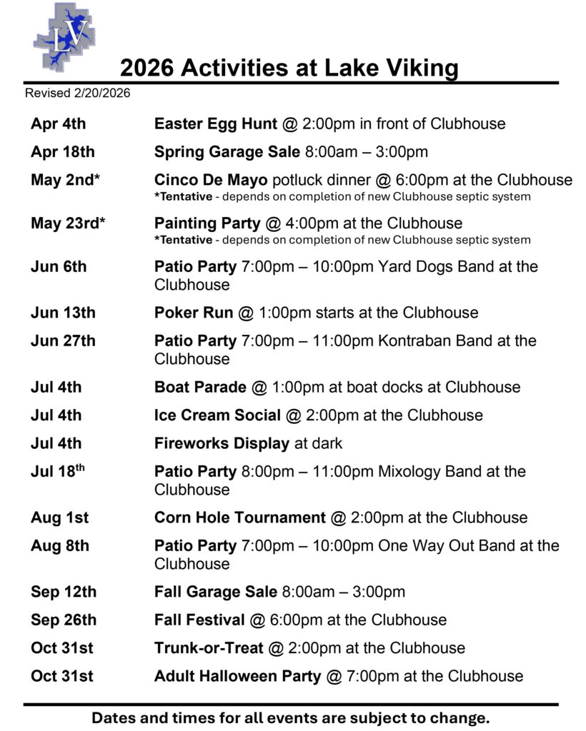 Picture the fireworks lighting up the sky, delight in the aroma of BBQ, share some laughs with your friends who just happen to be your neighbors at warm and welcoming Lake Viking!